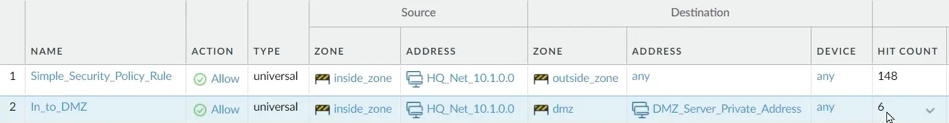 Default Intra-Zone rule to allow and default Inter-zone rule to deny.